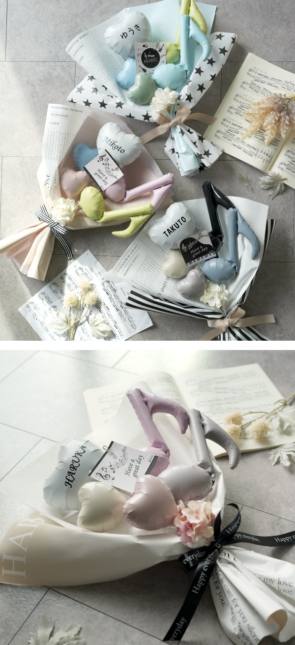 用途に合わせてバルーンとカードを組み合わせることができます。かわいい音符のクリップ付き♪