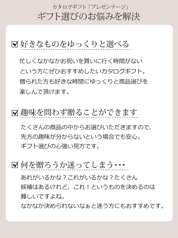 国内外の一流ブランドの商品を数多く取り揃えた品質の高いカタログギフトです。