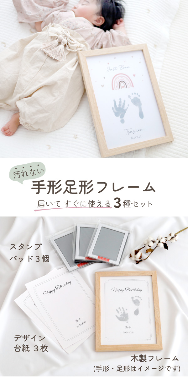 手形足形 フレームセット フレーム 出産祝い ギフト 命名書 手形スタンプ お七夜 100日祝い ハーフバースデー1歳