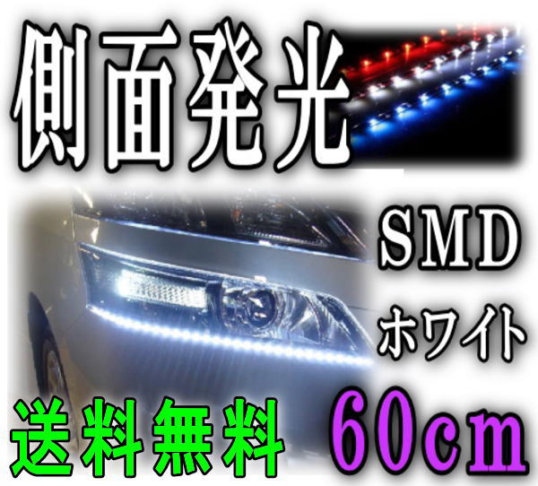 側面 (60cm) 白 【メール便 送料無料】 側面発光LEDテープ ホワイト 5050 SMD 切断可能 カット可能 防水 汎用 曲面対応 アイライン LEDテープライト アンダーライト 車 バイクに 取り付け方 イルミ ネオン