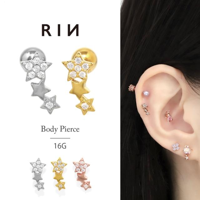 軟骨ピアス ボディピアス セカンドピアス サージカルステンレス ステンレスピアス 宇宙 コスモ 星 スター ブラック シルバー ゴールド ピンクゴールド りん 凛 ビーズリング0062「CBR」「colbk」「colsv」 s2f-113-83