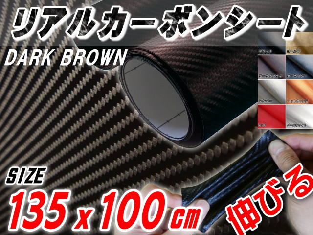 カーボン (大) 茶 【宅急便 送料無料】 幅135cm×1m リアルカーボンシート 糊付き ダークブラウン 長さ100cm 延長可能 カーボン調シート 耐熱 伸びる 3D曲面対応 カッティング可能シート状 内装 外装 インテリア ウォールクロス ボンネット カーラッピングフィルム
