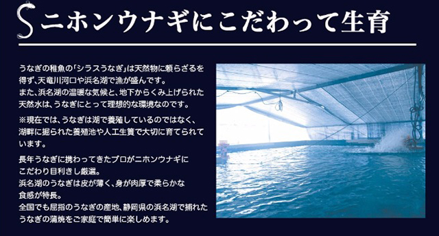 | 浜松・浜名湖産のうなぎのみを使用し、タレ作りから焼きにこだわり作り上げました。 ■蒲焼きはこだわりのタレでジューシーに焼き上げ、ごはんが止まらない美味しさ! ■白焼きはうまさをギュッと閉じ込めるように焼き上げ、素材そのものの美味しさをじっくり味わえる、通の調理法。 ご家庭に、お好みに合わせて蒲焼きか白焼きかをお選び下さい。。 |