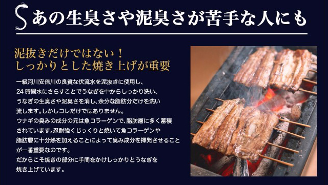 | ※白焼きと蒲焼きで同梱物が若干異なります。 ■蒲焼き 110g×2尾・たれ、吸い物、山椒×各2 ■白焼 110g×2尾・わさび、醤油、吸い物 |