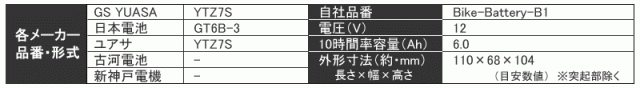 バイクバッテリー 蓄電池 YTZ7S GT6B-3 YTZ7S YTZ6S FTZ7S FTZ5L-BS 互換対応 1年保証 密閉式(MF) 液入【配送種別:B】★