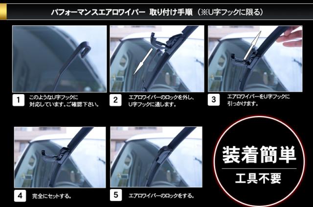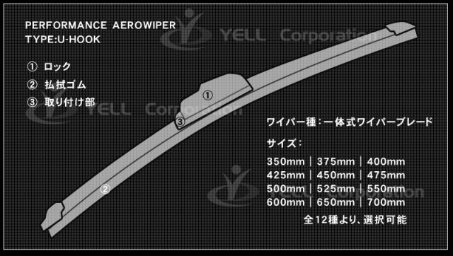 エアロワイパーロック付き U字フック 350〜700mm 2本セット サイズ選択自由【配送種別:B】