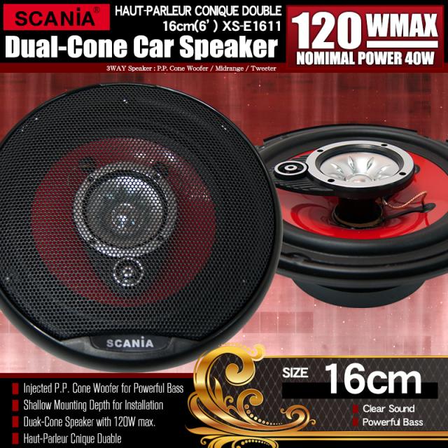 中級モデル カースピーカー XS-E1611 2WAY 16cmタイプ MAX120W 自動車 スピーカー【配送種別:B】