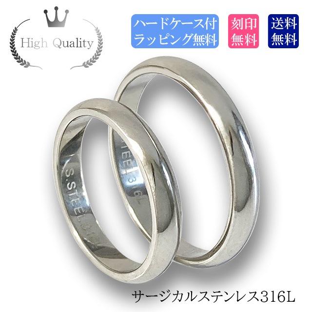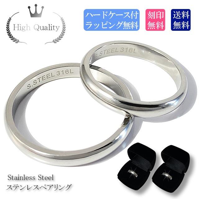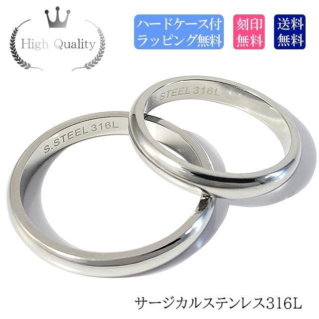 ペアリング ステンレス 銀色 シルバー カラー 2個セット シンプル 甲丸 刻印無料 高品質 サージカルステンレス 金属アレルギー 対応 幅約3mm アレルギーフリー ネーム ペアルック 送料無料 誕生日プレゼント 記念日 名彫り ハードケース付き 指輪 人気 誕生日プレゼント