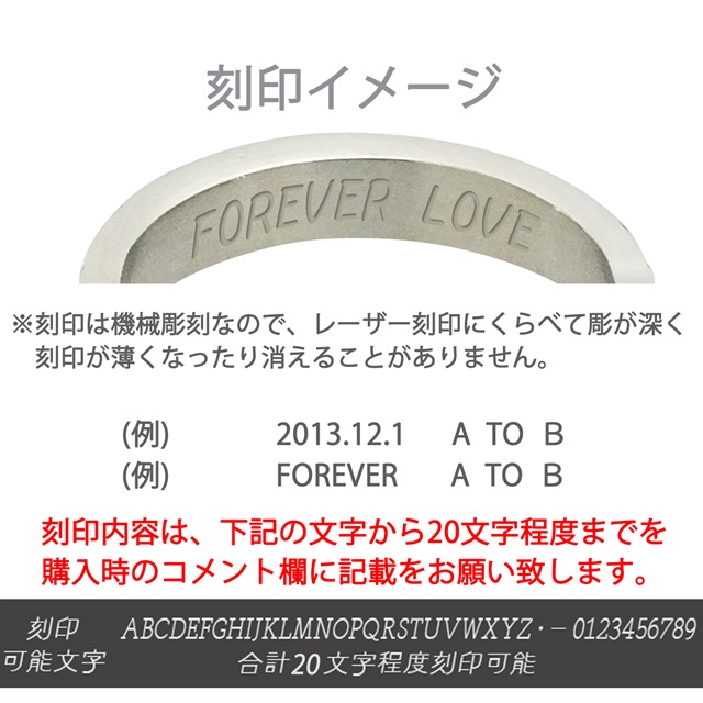 ※刻印を施したリングの返品・交換はできません。サイズ、刻印内容を間違えないようにご注意ください。
