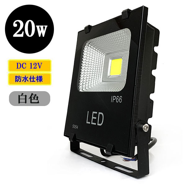 LED投光器20W・200W相当・防水・広角120°・DC12V 白色