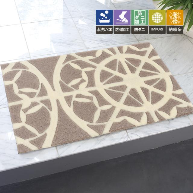 東リ マット 玄関マット 約50×80cm TOM5024 ラグ キッチンマット おしゃれ 手洗いOK 滑りにくい加工 防ダニ 洗える ウォッシャブル 防滑 デザインマット ベージュ レース柄 モチーフ エレガント 幾何学柄 ナチュラル モダン 引っ越し 新生活