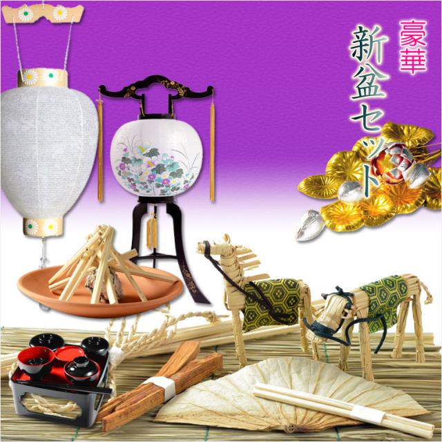 初めてのお盆〜毎年使える【豪豪華:新盆セット(盆棚なし)】お盆・新盆・初盆 提灯 ちょうちん 牛馬 迎え火 送り火 お盆飾り 祭壇 盆棚 精霊棚 仏壇 送料無料
