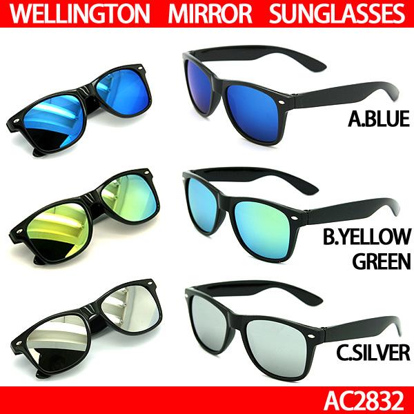 【送料無料】 サングラス ウェイファーラー 2832 ウェリントン ミラー ミラーサングラス 黒ぶち 極太 メンズ レディース