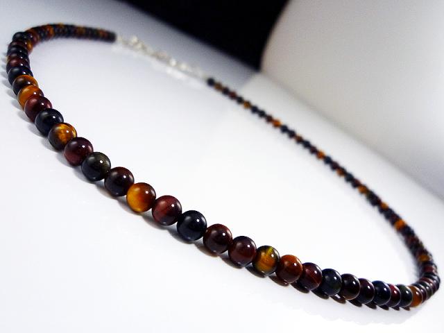 AAAA美しい4A高級天然石ミックスタイガーアイ4mmネックレスパワーストーン ★金運・仕事運を導くパワーストーン!