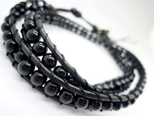こちらは海外セレブや芸能人も多数愛用している職人が丁寧に繋ぎ編み上げたオニキスの2連ラップブレスレットになります。