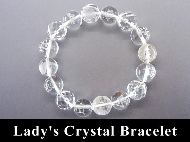 高品質天然石★素彫り四神獣水晶12mm素彫り梵字水晶12mmカット水晶12mm数珠ブレスレット