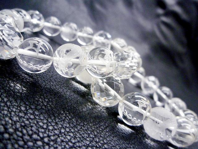 高品質天然石★素彫り四神獣水晶&素彫り梵字水晶&カット水晶&数珠ペアブレスレット★パワーストーン