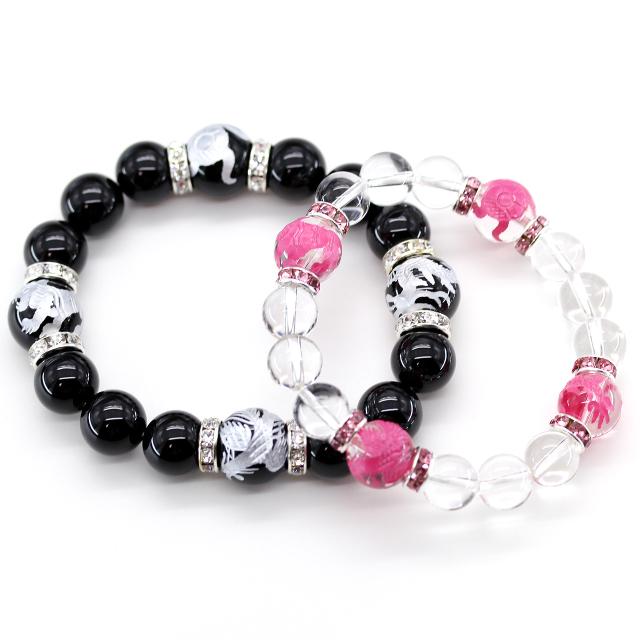 大切な相手にお守り数珠ペアブレスレット★オニキス四神獣と天然水晶四神獣の2点セット★パワーストーン ★運気を良い方向に導く!