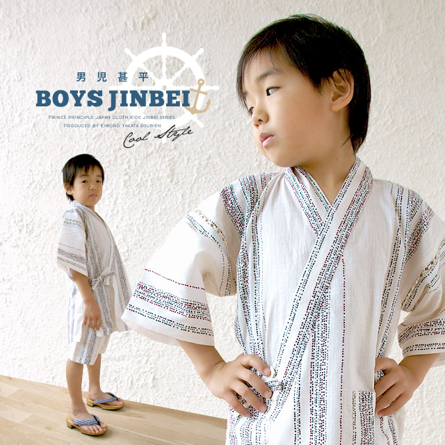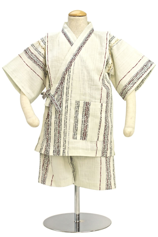 甚平 男の子 キッズ 花火大会 夏祭り 白 水玉 縞 変わり織り 男児 子供甚平 【100cm・110cm・120cm・130cm・140cm・150cm】