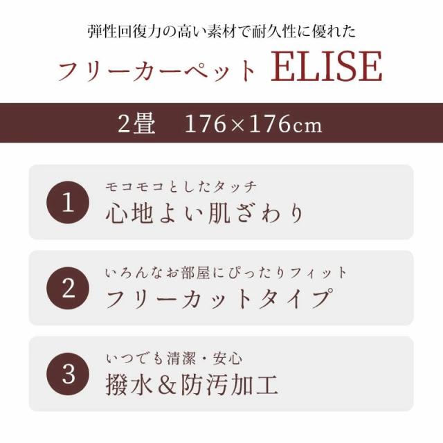 ラグ カーペット エリーゼ 2畳用 176×176cm 正方形 フリーカット 平織りカーペット 撥水 耐久