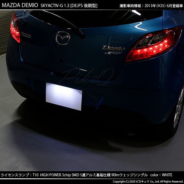 | マツダ デミオ[DE系 後期モデル]対応ライセンスランプ用LEDバルブ T10 HIGH POWER 3CHIP SMD 5連ウェッジシングル球 明るさ90ルーメン アルミ基板搭載 LEDカラー:ホワイト 1セット1個入り | ||||