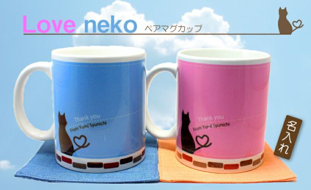 ペアマグカップ桐箱入 夫婦love neko 翌々営業日出荷 猫 誕生日 マグカップ ペアカップ 名前 名入り ペア ペアセット プレゼント 名入れ ギフト