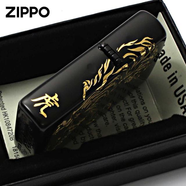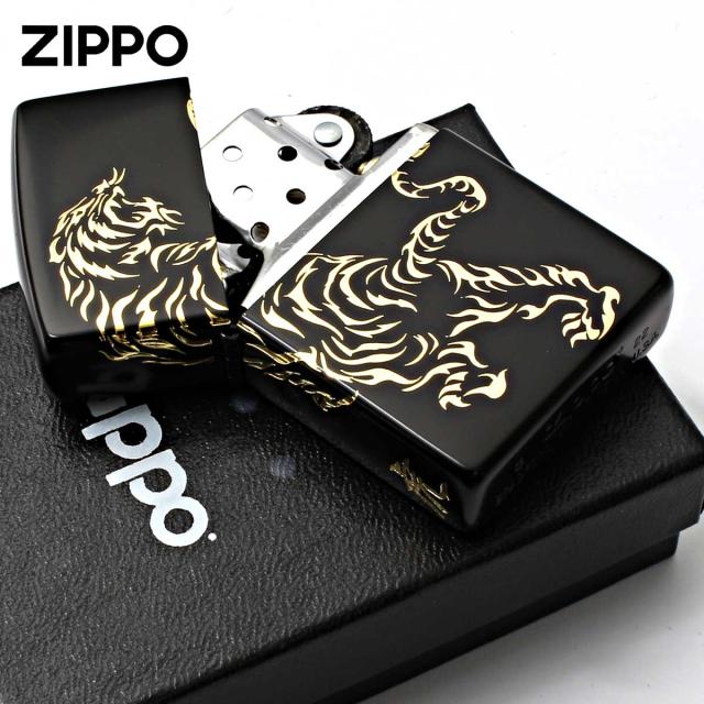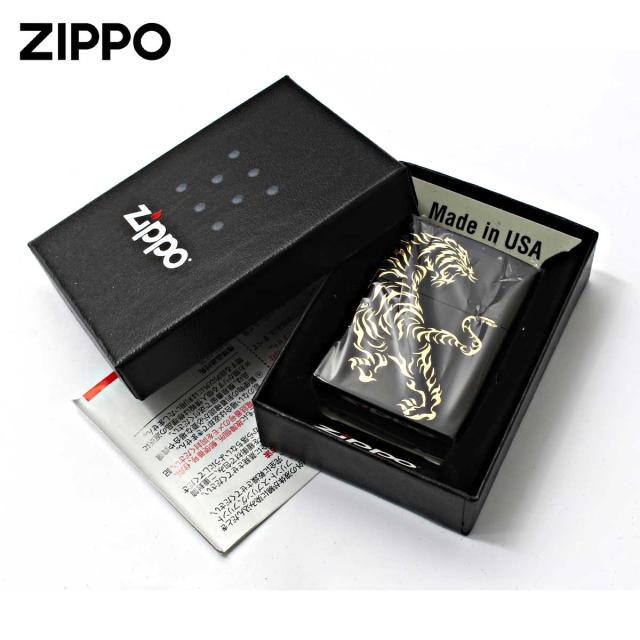 Zippo ジッポライター 虎 タイガー 2面連続加工 ブラックマット 金サシ Tiger & Dragon 2BKG-TIGER メール便専用商品