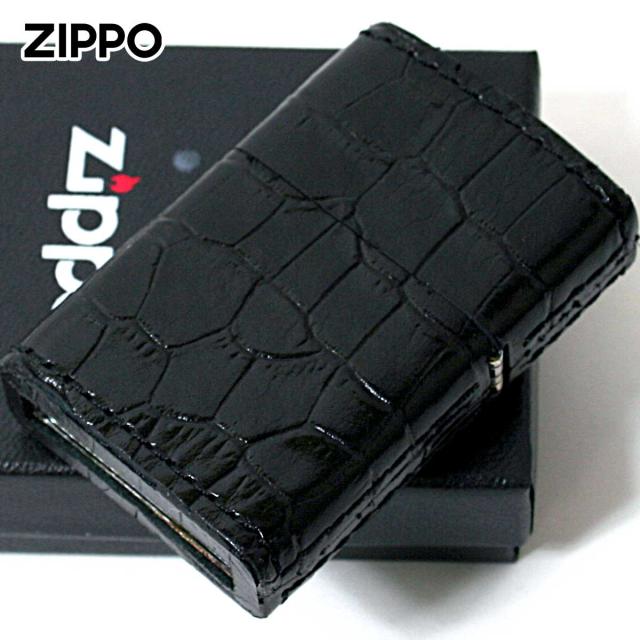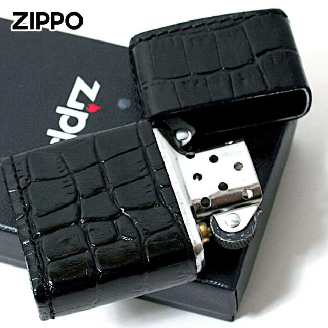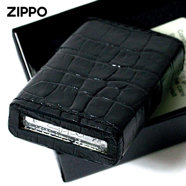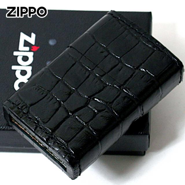Zippo ジッポライター 革巻き 本革 クロコダイル ワニ 黒 ブラック メール便専用商品