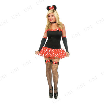 | 商品説明 | 赤いドットのミニスカートがキュートなマウスガールのコスチュームです。ストレッチの効いたキャミ風トップに超ミニスカートのドレスでセクシーミニーに変身! ※チョーカーのストーンはついていません |