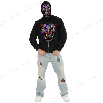 | 商品説明 | おしゃれに着こなす!ユニークなパーカーです。ただのこわもてピエロがプリントされたパーカーと思ったらいけません。ジッパーを最後まで上げることで、自分自身が変身しちゃう!ピエロの目からは、ちゃんと外が見えます |