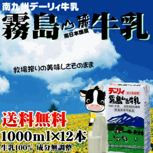 【送料無料 牛乳 九州】デーリィ霧島山麓牛乳1L×12本美味しさそのままロングライフ・常温保存も可能な生乳の風味をそのまま生かした新鮮な牛乳agesugi_sgu