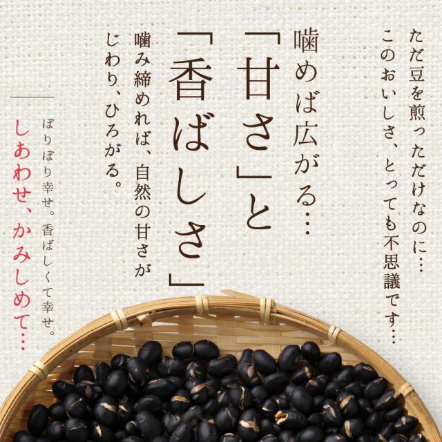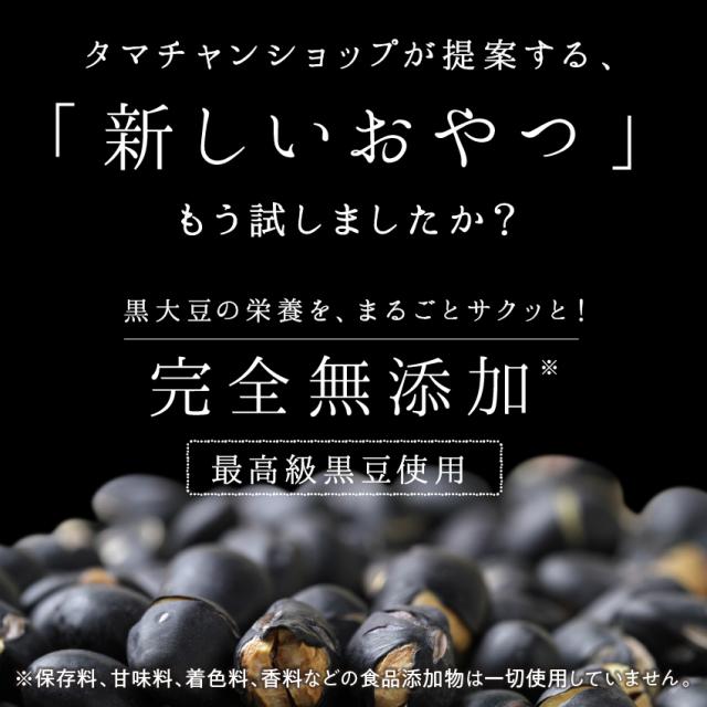 大豆の栄養をまるごと食べれる、サクッと香ばしい煎り黒豆。タマチャンショップの黒大豆は、福岡県産の最高級黒豆「クロダマル」を使用。巡りをサポートするアントシアニンが2倍以上含まれ、豊富な甘みが特徴です。茹でてお料理にアレンジしたり、黒豆茶として楽しむこともできます。大豆をシンプルに煎った無添加の安心おやつ。お子様からお父さんのおつまみにもぜひどうぞ。そのままでも黒豆茶にも♪