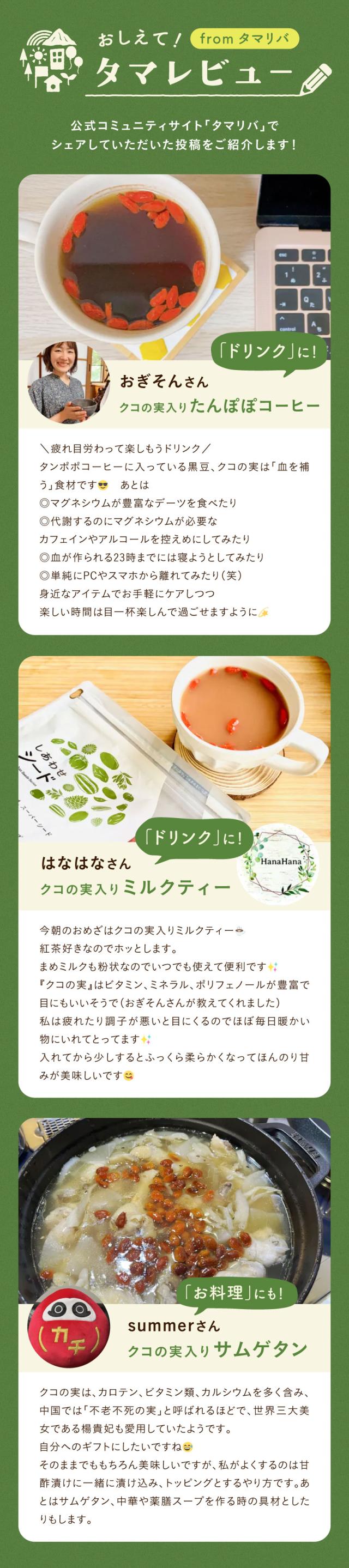 - クコの実は、いつも日本橋八木町で買ってました。コロナ禍で行くことに不便さを感じ 一度はネットで買ってみようと思い タマチャンショップが沢山有る中でも 良い感じがしたので初買い物してみました。美味しかっ...