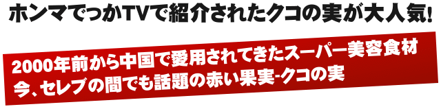 100種類の栄養成分を持つと言われる赤いスーパー果実-クコの実(枸杞子)こんにちは!タマチャンショップの田中です。以前から販売していたのですがこのところ、クコの実が非常に注目を集めているという事で、クコの実には、体内ですぐに栄養分として摂り入れられる、βカロチンが大量に含まれています。それ以外にも、ビタミンA・ビタミンB1・ビタミンC・鉄分・カルシウムなどの必須成分を含んでおり、近年では女性やセレブの間でも注目されている理由が、エイジングケアという事で人気を集めているそうです!おそるべし赤い果実