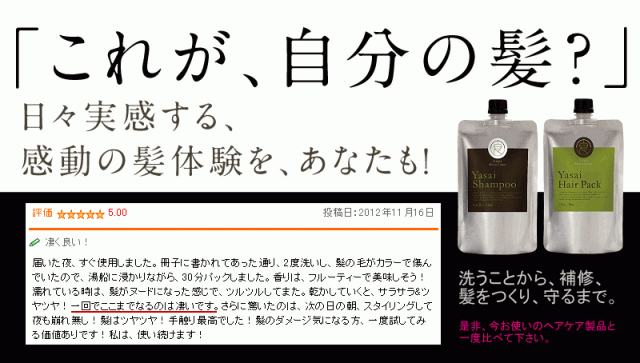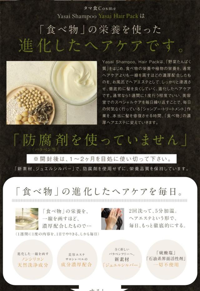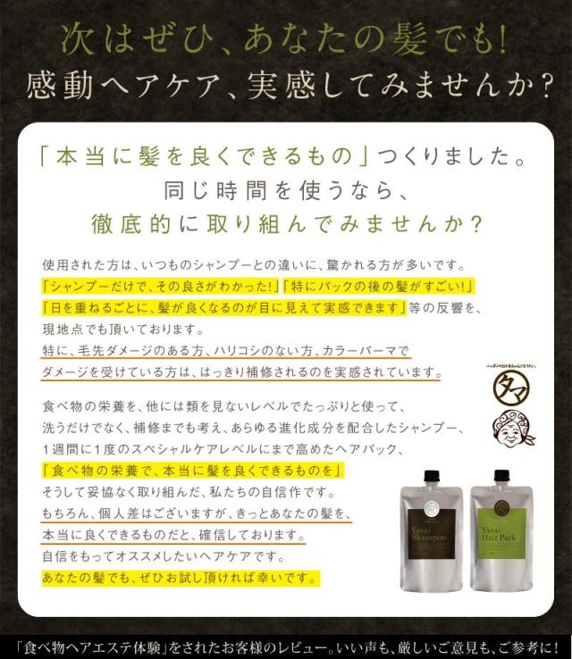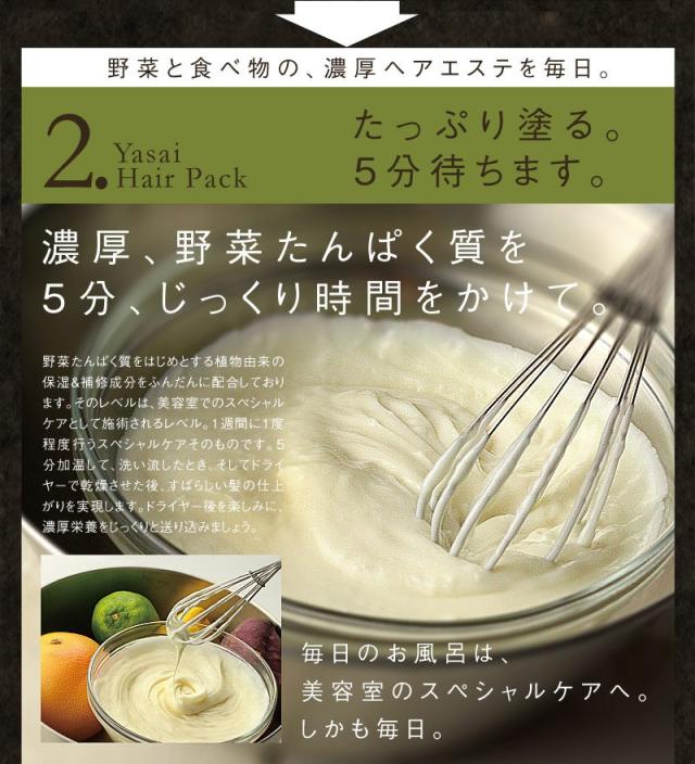 YASAI ノンシリコンシャンプー&ヘアパックセット(読本付き)地肌から毛先まで、洗う・補修・髪をつくり・守るまで進化