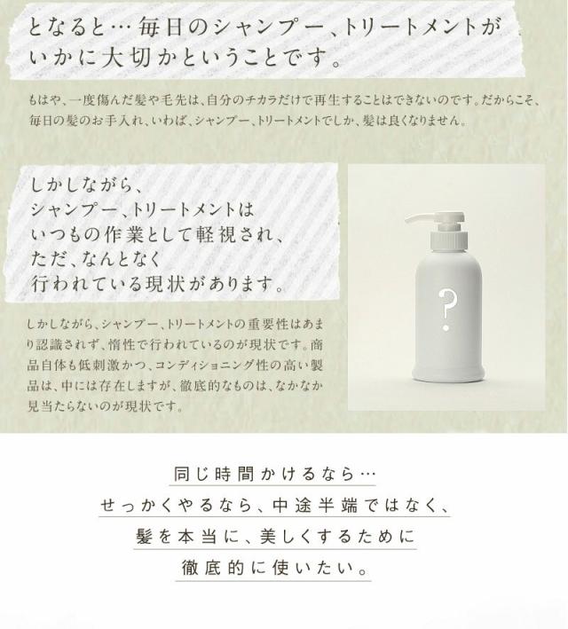 - 初めて購入しますが、お得なセール価格でしたので4セットをゲット!洗髪前にブラッシングして2度のシャンプー後にパック。美味しい自然の香りがします。シャンプーはきめ細かで豊かな泡立ち、マッサージも楽しく心...