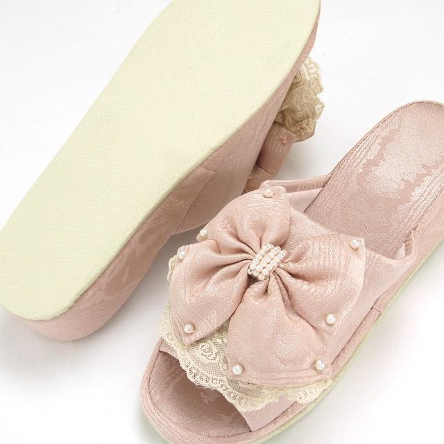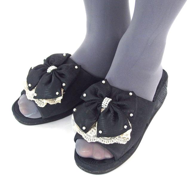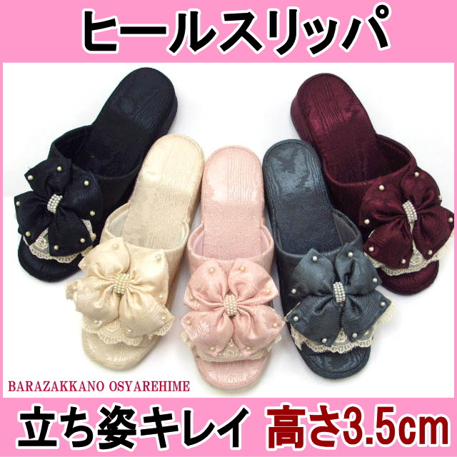 【在庫一掃★残りわずか】スリッパ ヒール レース リボン かわいい 室内 ラルイス プリンセス パール 薔薇 姫系 レディース 授業参観 おしゃれ 卒園式 来客用