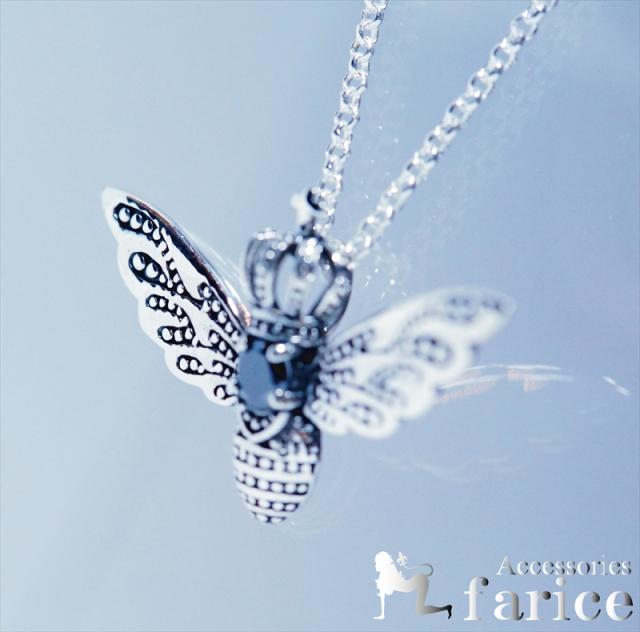バタフライ 蝶々 ブラックジルコニア クラウン 王冠 シルバー925 ペンダント ネックレス