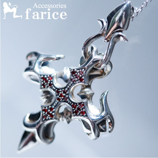 レッドジルコニア クロス 十字架 百合の花の紋章 シルバー925 ペンダント ネックレス