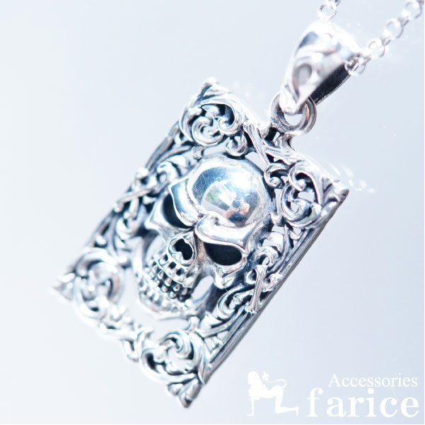 スカル 髑髏 アラベスク ツタ プレート シルバー925 ペンダント ネックレス