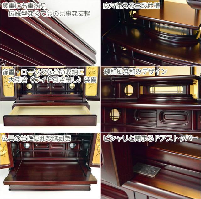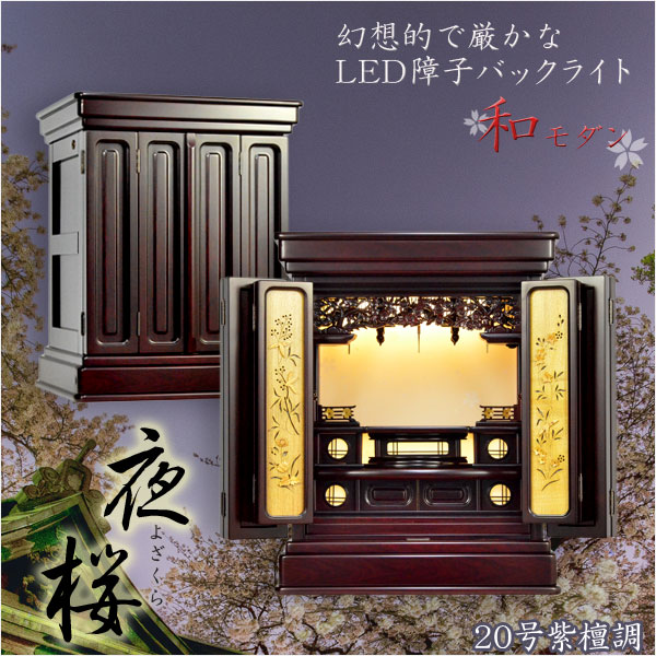 現代的な伝統型仏壇【優美に和むモダン仏壇:夜桜(よざくら) 20号紫檀調】上置き小型仏壇・ミニ仏壇 送料無料