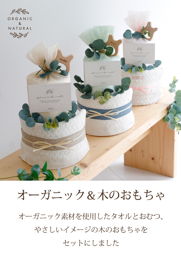 | 商品名 | オーガニック&木のおもちゃ おむつケーキ |