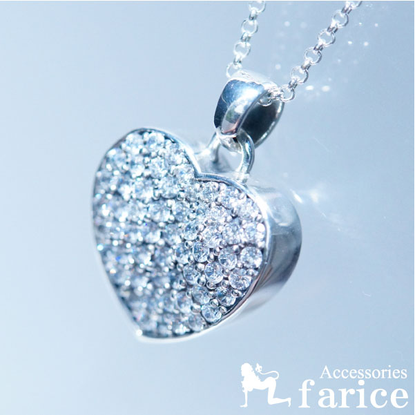 ハート 立体 クリアジルコニア パヴェ装飾 ジュエリー シルバー925 ペンダント ネックレス