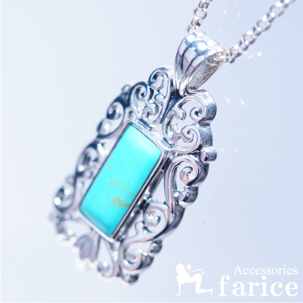 ターコイズ クラシックプレート 長方形 レクトアングル ヨーロピアン調 エレガント シルバー925 レディース ペンダント ネックレス