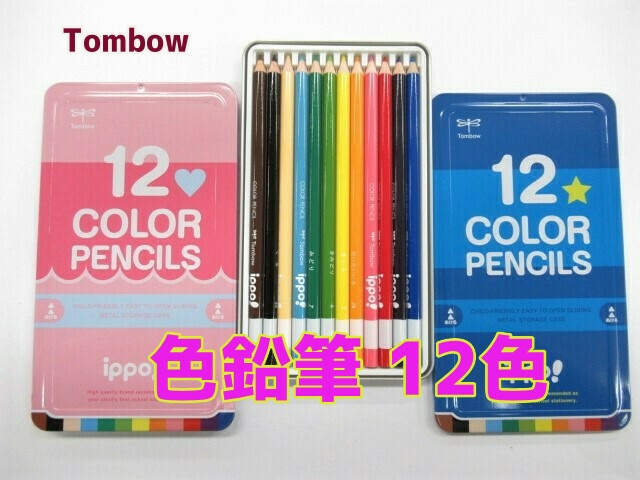 トンボ色鉛筆 12色 1200円 スライド缶 CL-RPM04 PW04 ブルー缶 ピンク缶 プレゼント 入学 小学生 メール便送料込
