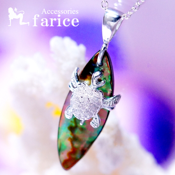 サーフボード 貝 アバロンシェル ホヌ ウミガメ 手足可動式 ハワイアンジュエリー シルバー925 レディース ペンダント ネックレス