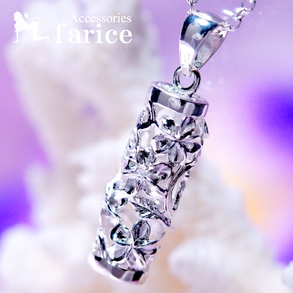 プルメリア 花 リーフ 葉 チューブ ハワイアンジュエリー シルバー925 ペンダント ネックレス