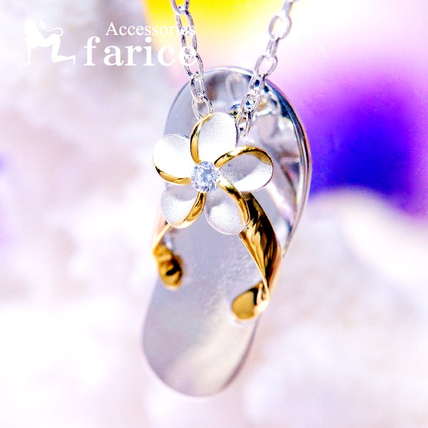 ビーチサンダル プルメリア 花緒 クリアジルコニア ゴールド ハワイアンジュエリー シルバー925 ペンダント ネックレス