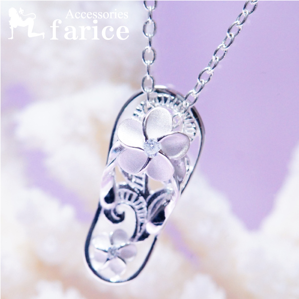 ビーチサンダ プルメリア 花 スクロール クリアジルコニア ハワイアンジュエリー シルバー925 ペンダント ネックレス