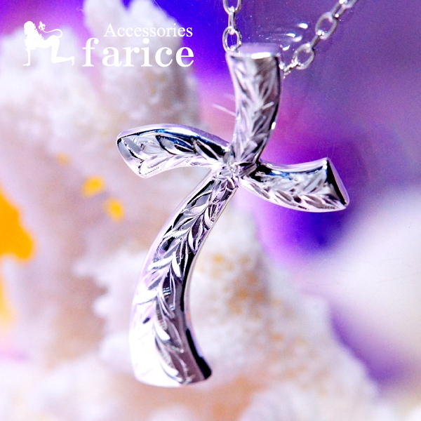 クロス 十字架 マイレ 葉 パームツリー ヤシの木アレンジ ハワイアンジュエリー シルバー925 ペンダント ネックレス M